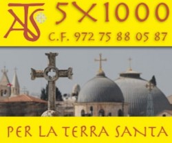 Caro Amico pro Terra Santa, aiutaci a sostenere le opere della Custodia di Terra Santa in Medio Oriente, devolvendo il tuo 5 per mille alla Associazione ATS pro Terra Sancta. Nell’apposito spazio della tua dichiarazione o del tuo cud, scrivi il codice fiscale dell’Associazione e la tua firma: